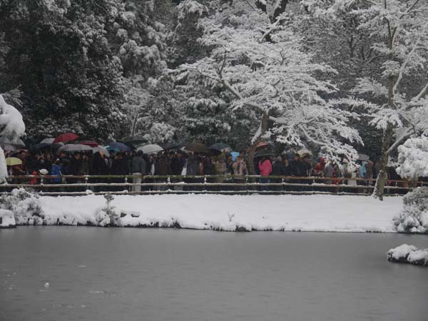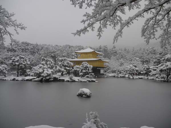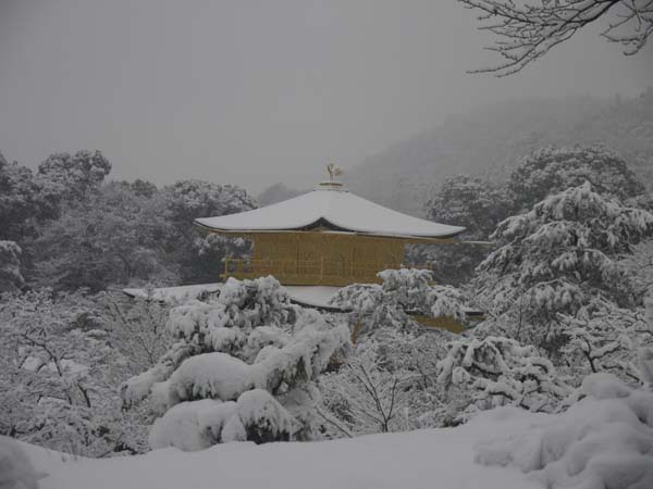 2010年大晦日は、朝から雪が降り続いていました。道路にも雪が積もり凍結もしていたため、バスで金閣寺に行きました。午前中はそのバスも運行停止していたことを後で聞きました。 It continued to snow from morning on the last day of the year in 2010. Because the road froze up, I went to Kinkaku-ji Temple by bus.